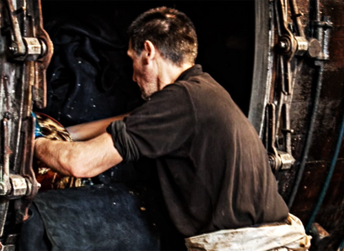 さまざまな作業工程を経て生まれる、世界品質のレザー。それぞれの工程では、熟練職人たちの目と技が光ります。