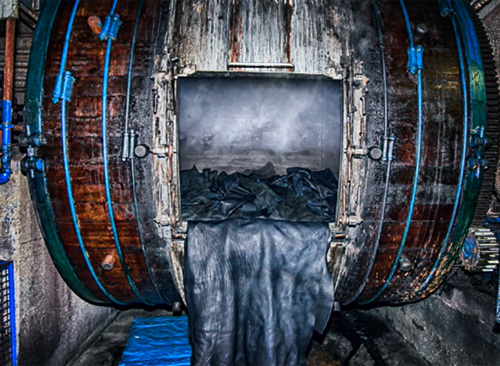 世界有数の革の原産国であるイタリア・トスカーナ地区に拠点を置くタンナー『La Perla Azzurra 社』にて、